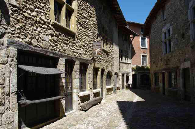 L’église forteresse.les maisons des princes et de Jean Escoffier.La place aux tilleuls.les vestiges de la double enceinte.les étales des maisons ou les marchandsvendaient leurs produits.